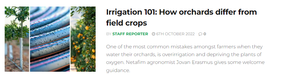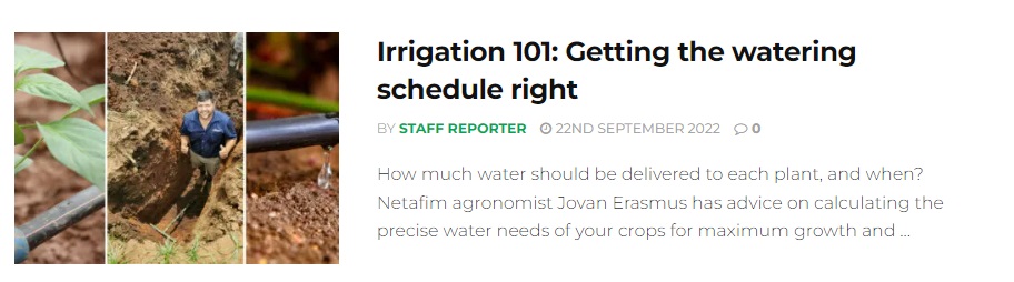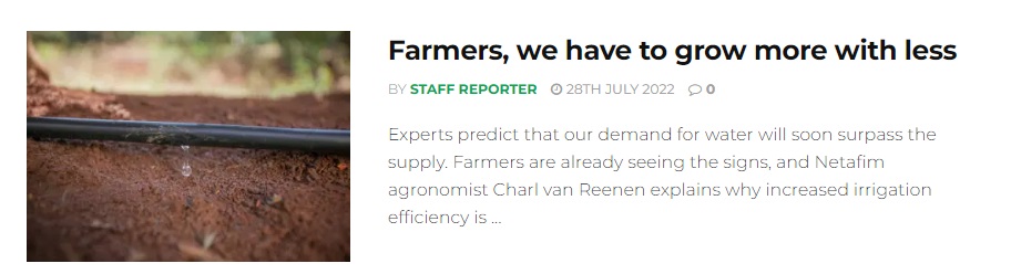 Netafim South Africa recently ran a series of informative articles and podcasts on www.foodformzansi.co.za. The posts introduced readers and listeners to Netafim, precision irrigation and growing more with less.