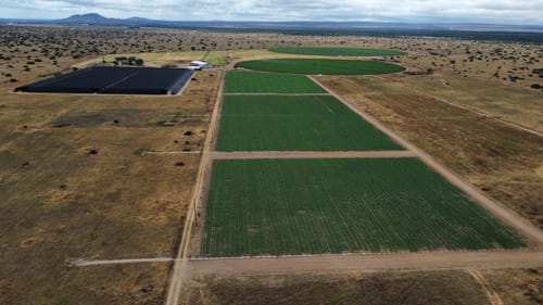 An aerial view of one of the sugar bean fields under drip irrigation.