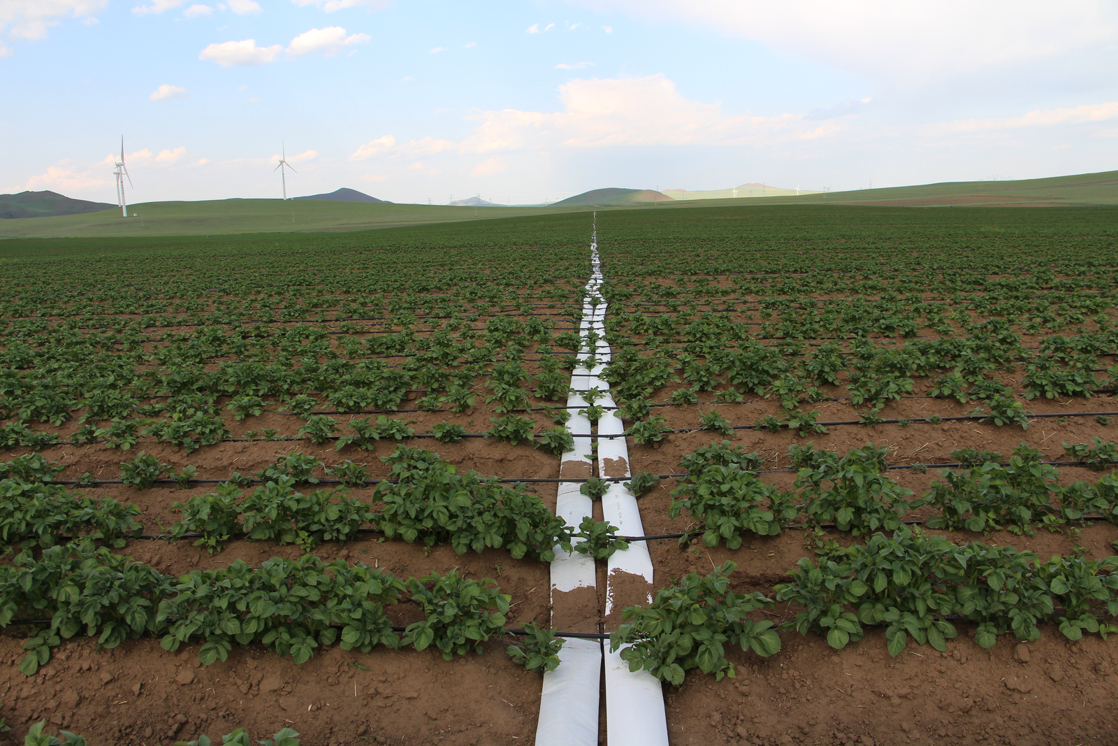 Sub-surface drip irrigation (SDI) systems are most suitable for large-scale potato field operations. Compared with on-surface systems, SDIs deliver additional benefits such as lower labour requirements, protection from agro-machinery interference, and enhanced water-use efficiency.